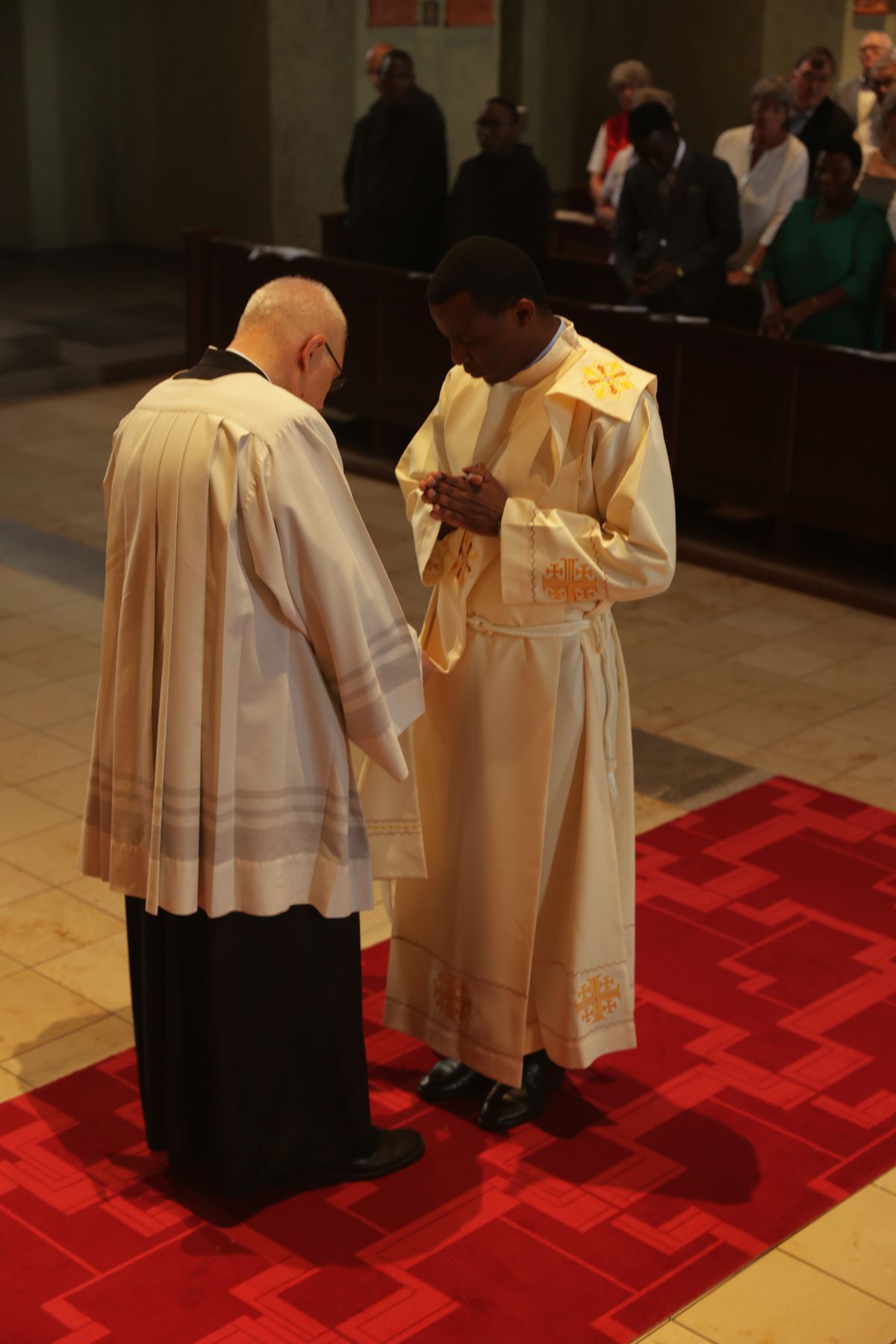 Zu Beginn der Feier stellte Rektor Pater Mario Muschik den Weihekandidaten vor und bat ihn, vor den Bischof zu treten. Der Diakon bekundete seine Bereitschaft zur Priesterweihe mit den Worten: „Hier bin ich.“ Muschik versicherte sodann, dass der Kandidat für das Priesteramt geeignet sei, und bestätigte dessen guten Leumund. Vor der Erteilung der Priesterweihe versprach Mushi, seinen Dienst in Ehrfurcht und Gehorsam gegenüber dem jeweiligen Bischof in seinem Wirkungsgebiet zu tun. Dabei erklärte er unter anderem, sich mit seinem ganzen Leben an Christus zu binden und aus dieser Beziehung zum Heil der Menschen zu leben.