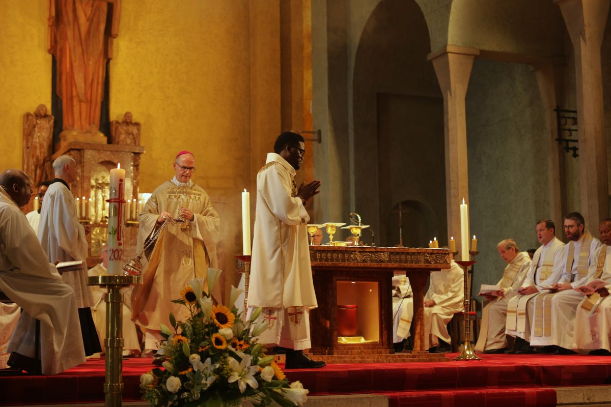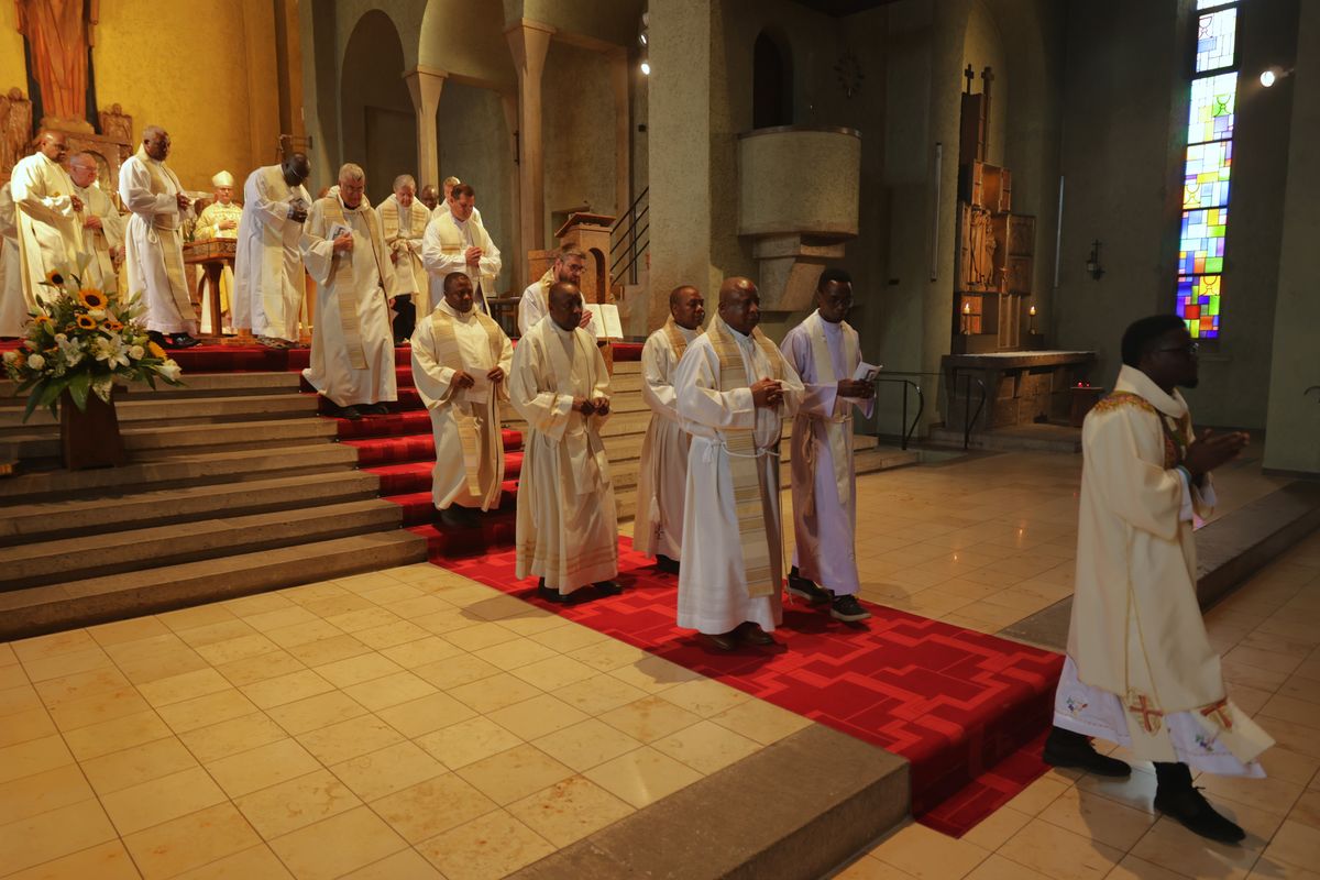 Bischof Dr. Franz Jung hat am Samstag, 26. Juli, in der Würzburger Herz-Jesu-Kirche den Mariannhiller Missionar Simon Francis Mushi zum Priester geweiht.