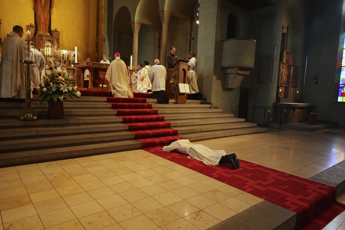 Bei der Anrufung der Heiligen lag der Weihekandidat ausgestreckt am Boden und zeigte seine Bereitschaft, sich Gott ganz hinzugeben. Dann legten ihm Bischof Jung sowie 20 Priester der Gemeinschaft der Mariannhiller Missionare und aus dem Bistum Würzburg die Hände auf – seit urchristlicher Zeit Zeichen für die Beauftragung und Bevollmächtigung. Im Weihegebet bat Bischof Jung schließlich um den Geist Gottes für den Neupriester. Als „ausdeutende Zeichen“ der Weihehandlungen zogen zwei Priester dem Neugeweihten das Priestergewand an, salbte ihm Bischof Jung die Hände mit Chrisam, überreichte Kelch und Hostienschale und umarmte ihn zum Friedensgruß.