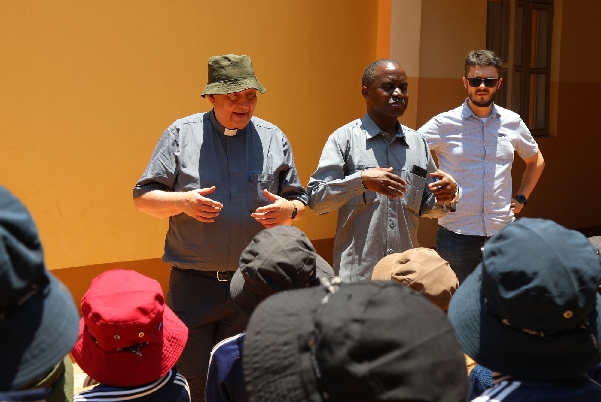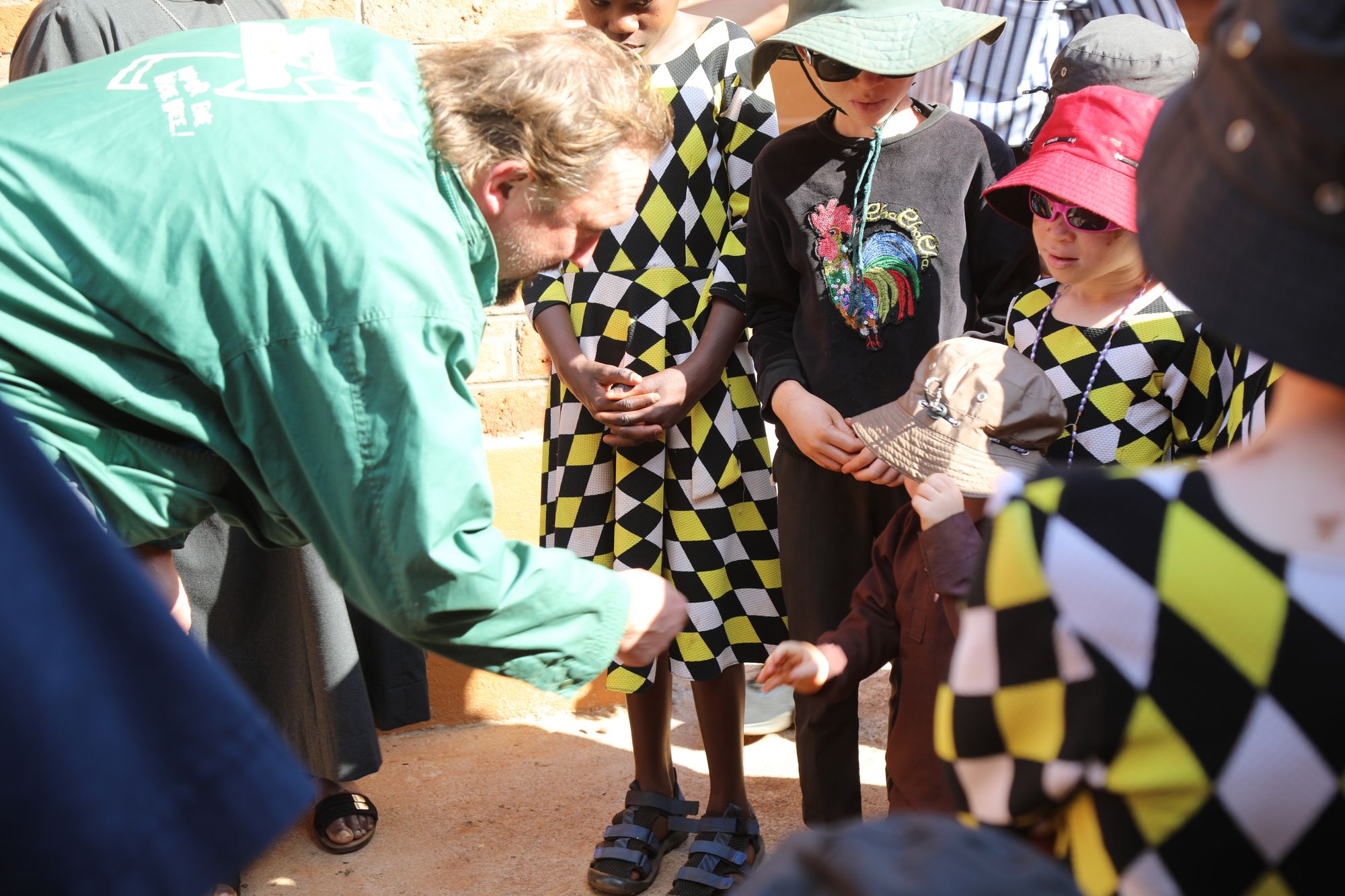 Mbinga (POW) Mit einem lauten „Karibu!“ – „Willkommen!“ begrüßen die Kinder den Besuch aus Deutschland. Dann stimmen sie „If you’re happy and you know it clap your hands“ an und klatschen zum Takt einer Trommel in die Hände. Doch bei den Kindern vom Internat Saint Albin der Diözese Mbinga ist manches anders als in der benachbarten diözesanen Saint Wilhelm Grundschule. Trotz der Hitze tragen die Jungen und Mädchen lange Hosen, die Ärmel der Jacken und Kleider reichen mindestens über den Ellenbogen. Alle tragen Sonnenbrillen und haben Sonnenhüte auf. Der Schutz vor der Sonne ist für sie überlebenswichtig: In Saint Albin wohnen ausschließlich Kinder mit Albinismus. Sie kommen aus der ganzen Diözese, manche sogar aus der Erzdiözese Songea oder aus Dar es Salaam. Er kenne keine andere derartige Einrichtung für Albinos hier im Süden Tansanias, erklärt Afrikareferent Burkhard Pechtl von der Diözesanstelle Weltkirche der Diözese Würzburg. Domkapitular Albin Krämer, Leiter der Hauptabteilung Seelsorge, und Diözesanjugendseelsorger Christoph Hippe applaudieren den Kindern und danken auf Englisch für den herzlichen Empfang. Beide waren im Spätherbst erstmals zu Besuch im Partnerbistum Mbinga.
