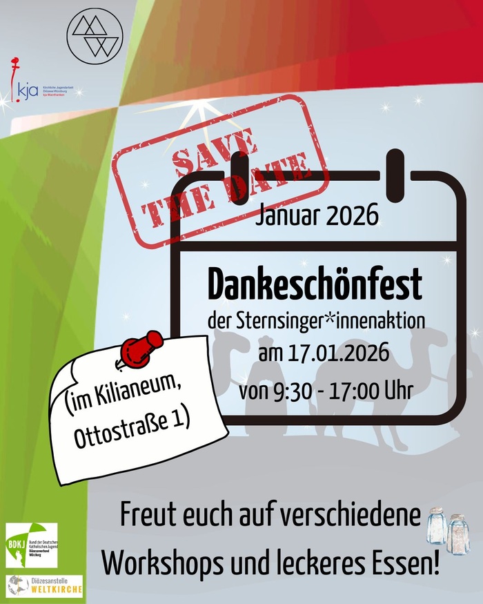 Schon heute wollen wir "Dankeschön" sagen an alle kleinen und großen Könige, die im Januar 2026 als Sternsinger und Sternsingerinnen unterwegs sein werden. Ihr seid ganz groß! Und auch heute schon möchten wir Euch deshalb zum Dankeschön-Fest am 17.01.2026 ganz herzlich einladen. SAVE THE DATE!